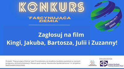 Filmy pt. "Fascynująca Ziemia" wykonane przez naszych uczniów zostały zakwalifikowane do drugiego etapu konkursu i opublikowane na kanale YouTube Instytutu Geofizyki PAN.