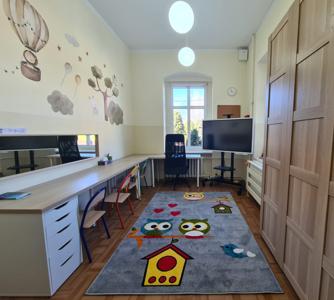 Z radością informujemy, że w naszej szkole powstała nowoczesna sala do zajęć specjalistycznych! Sala została zaprojektowana z myślą o komforcie i przyjaznej atmosferze. Jasne kolory, wygodne meble oraz starannie dobrane dekoracje tworzą przestrzeń, w której uczniowie mogą czuć się swobodnie i bezpiecznie. Dodatkowo, sala jest wyposażona w najnowsze technologie i materiały edukacyjne, które wspierają efektywność każdej sesji terapeutycznej. Projekt został zrealizowany w ramach środków pozyskanych z rządowego programu Aktywna Tablica na lata 2020 - 2024 w kwocie 35 tys. złotych oraz wkładu własnego Gmina Marcinowice w kwocie 8750 zł.