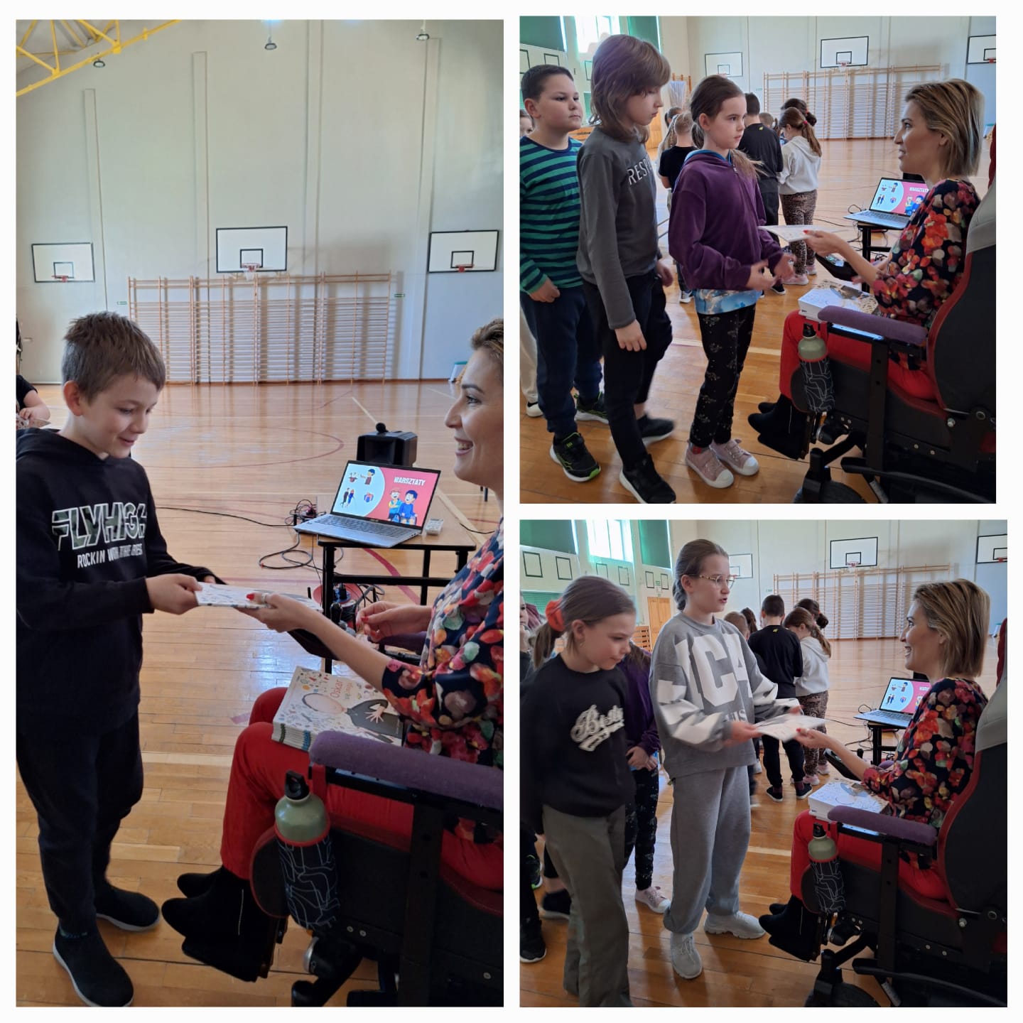 Dodatkowo uczniowie otrzymali książkę „Oskar się miga”, która pokazuje, jak osoby Głuche komunikują się, tańczą, uczą i podróżują. To piękna opowieść o budowaniu mostów między światem słyszących i niesłyszących, pełna inspiracji do otwartości i zrozumienia.