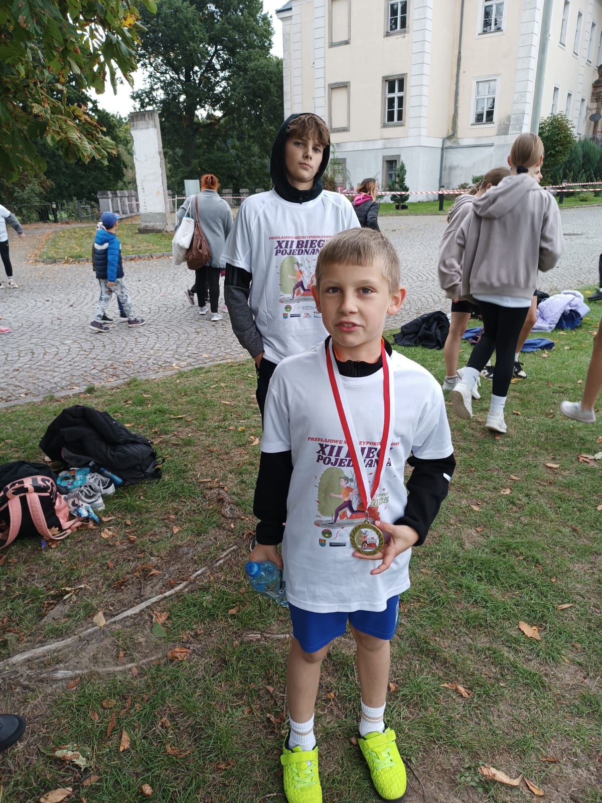 W dniu 25.09.2025r. reprezentacja dziewcząt i chłopców z Naszej Szkoły, w liczbie 33 osób, wzięła udział w Międzypokoleniowych Przełajowych Biegach Pojednania LZS "Aktywna wieś" Krzyżowa 2025. Startowaliśmy w 3 biegach dziewcząt i 5 biegach chłopców. Wszyscy startujący ukończyli swoje biegi, a uczeń klasy 2b Czykieta Antoni odniósł duży sukces zajmując w swoim biegu II miejsce, za co otrzymał dodatkową nagrodę- srebrnego buta! Wszyscy uczestnicy otrzymali pamiątkowe medale i koszulki, oraz skorzystali z przygotowanego ciepłego posiłku. Opiekunami zawodników byli Panowie: Władysław Bielecki, Przemysław Malczyk i praktykant- student AWF Wrocław Bartłomiej Matyjaszczyk. Pozdrawiamy i do zobaczenia za rok!!! Zapraszamy do galerii zdjęć.