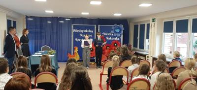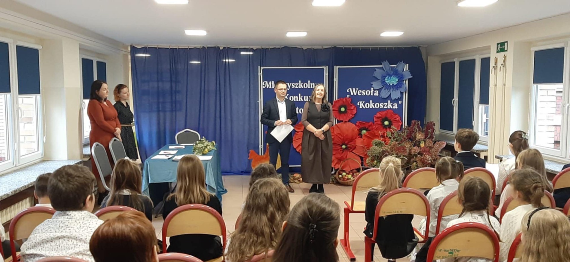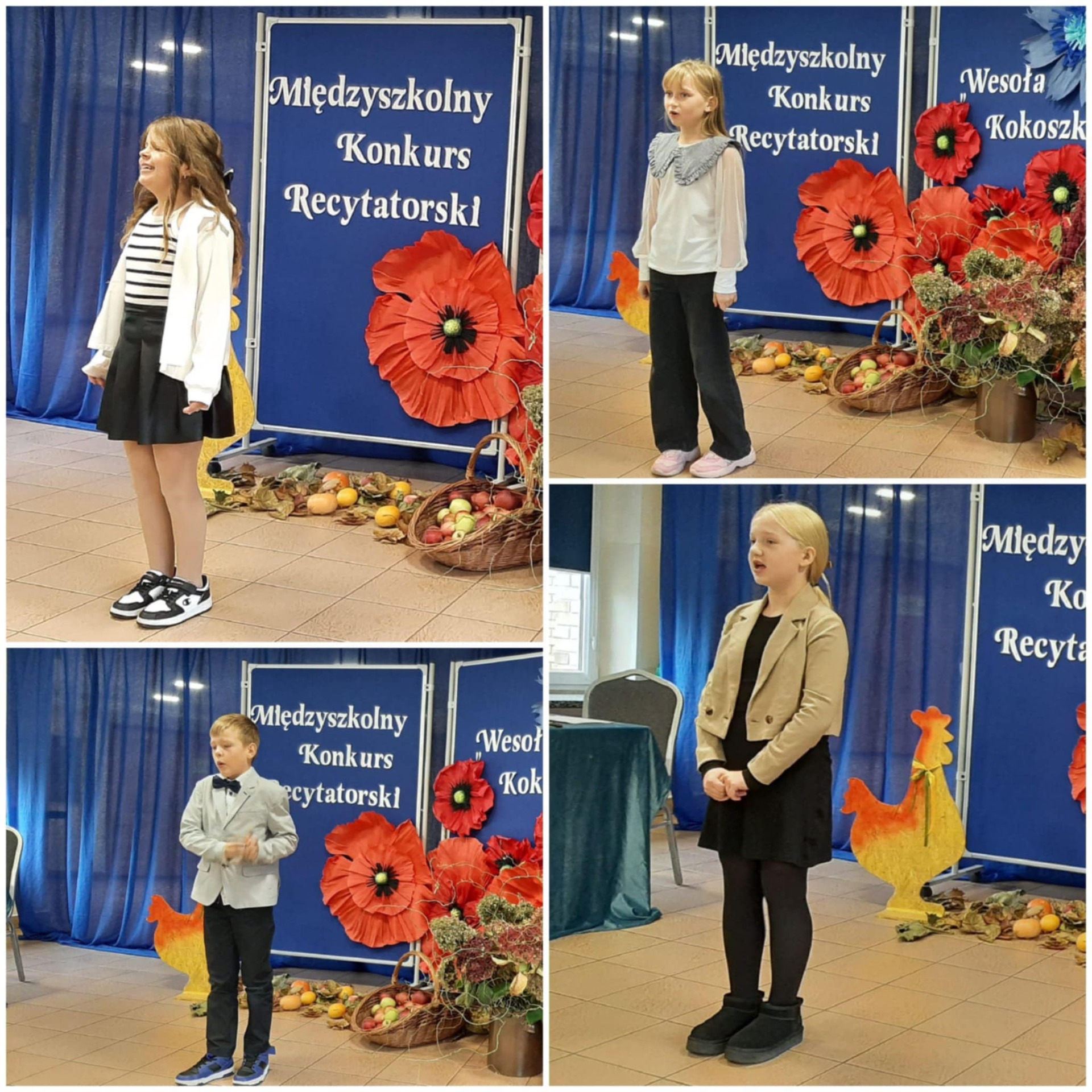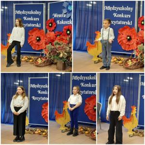 XXII edycja konkursu recytatorskiego „Wesoła Kokoszka” 22 października w naszej szkole odbyła się XXII edycja konkursu recytatorskiego „Wesoła Kokoszka” zorganizowany wspólnie z Centrum Kulturalno-Bibliotecznym w Marcinowicach. W tegorocznych zmaganiach wzięło udział 19 uczestników ze szkół powiatu świdnickiego, którzy zaprezentowali swoje umiejętności recytatorskie z wielkim zaangażowaniem, pasją i wrażliwością artystyczną. Występy oceniało powołane przez organizatora Jury w składzie: pani Monika Turzańska kierownik Wypożyczalni i Czytelni dla Dzieci i Młodzieży Miejskiej Biblioteki Publicznej w Świdnicy, pani Aneta Hryniwiecka – bibliotekarz Biblioteki w Wirach oraz pan Dawid Sobczyk – dyrektor Centrum Kulturalno-Bibliotecznego w Marcinowicach. Uroczystość prowadzili Mateusz Pilarski i Liliana Szal, którzy w roli konferansjerów zapowiadali kolejne występy uczestników. Nagrody główne otrzymali: