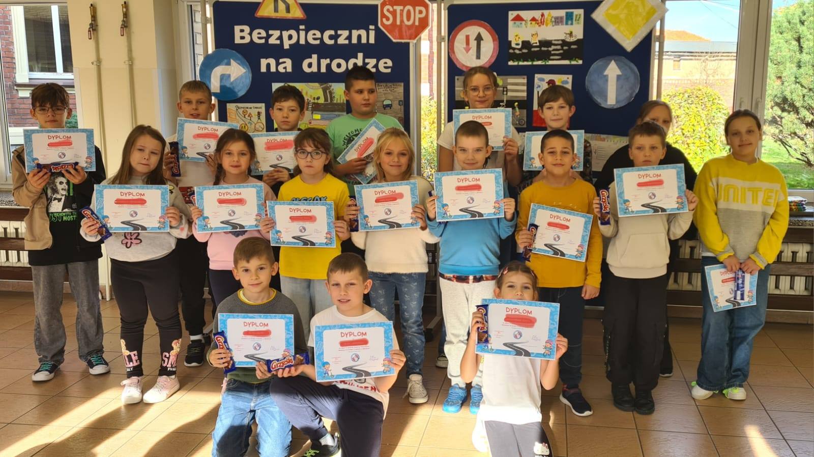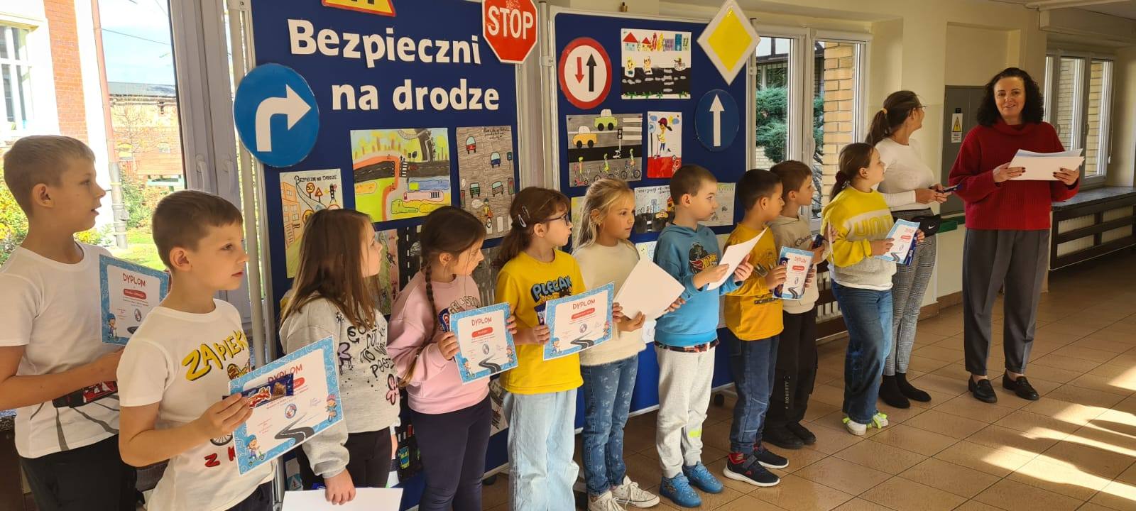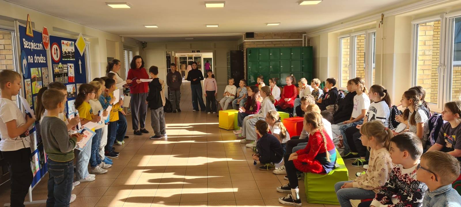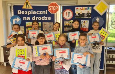 Uczniowie w swoich pracach pokazali, jak ważne jest bycie widocznym na drodze, noszenie kasku, przestrzeganie znaków drogowych oraz właściwe zachowanie pieszego, rowerzysty i użytkownika hulajnogi.