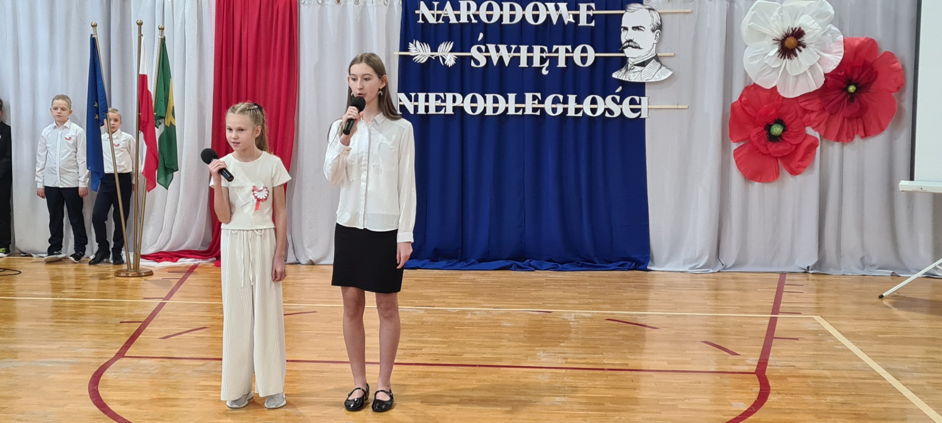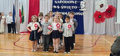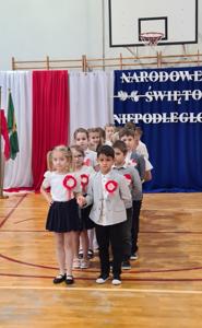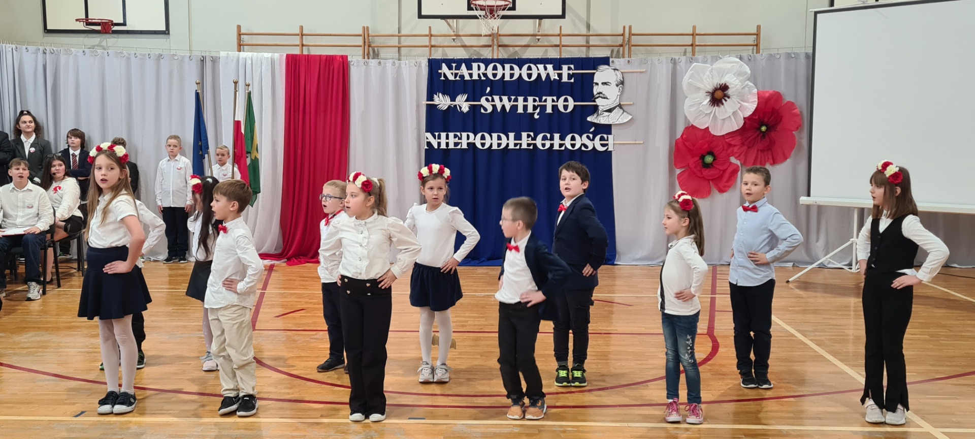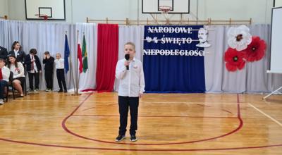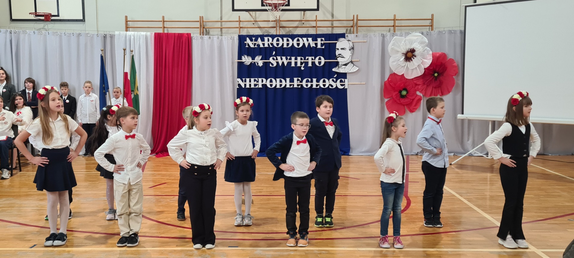 W piątek, 7 listopada, nasza szkoła w wyjątkowy sposób uczciła Narodowe Święto Niepodległości. Tego dnia oddaliśmy hołd wszystkim Polakom, którym zawdzięczamy wolność, niepodległość i tożsamość narodową. Najmłodsi otrzymali nagrody za piękne recytacje w szkolnym konkursie poezji patriotycznej. Uroczysty apel rozpoczęliśmy wspólnym odśpiewaniem hymnu państwowego, włączając się w ogólnopolską akcję „Szkoła do hymnu”. Następnie uczniowie zaprezentowali poruszający montaż słowno-muzyczny, na który złożyły się utwory polskich poetów sławiące kraj rodzinny, naszą ojczyznę, przypomniały o trudnej drodze Polski do niepodległości. Spektakl urozmaiciły pieśni patriotyczne w wykonaniu szkolnego chóru oraz polonez i mazurek w wykonaniu najmłodszych uczniów naszej szkoły.