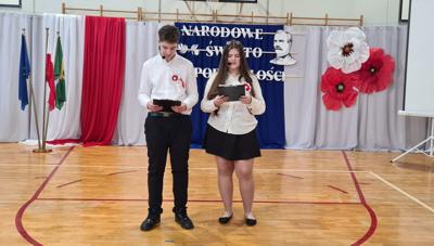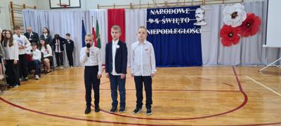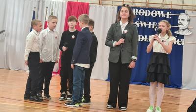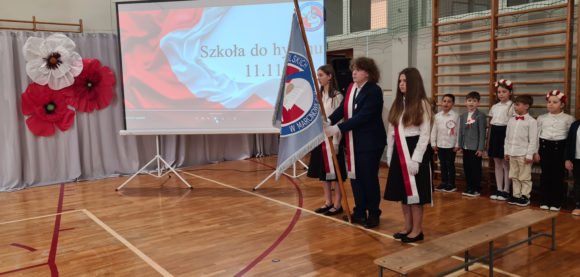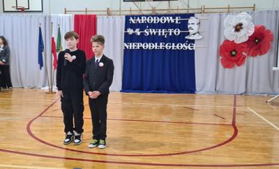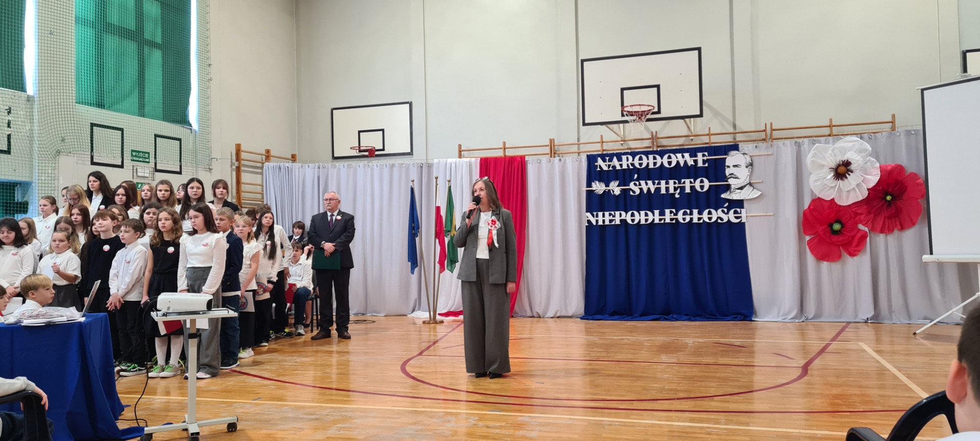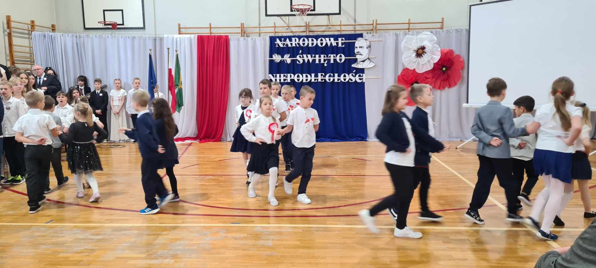 W piątek, 7 listopada, nasza szkoła w wyjątkowy sposób uczciła Narodowe Święto Niepodległości. Tego dnia oddaliśmy hołd wszystkim Polakom, którym zawdzięczamy wolność, niepodległość i tożsamość narodową. Najmłodsi otrzymali nagrody za piękne recytacje w szkolnym konkursie poezji patriotycznej. Uroczysty apel rozpoczęliśmy wspólnym odśpiewaniem hymnu państwowego, włączając się w ogólnopolską akcję „Szkoła do hymnu”. Następnie uczniowie zaprezentowali poruszający montaż słowno-muzyczny, na który złożyły się utwory polskich poetów sławiące kraj rodzinny, naszą ojczyznę, przypomniały o trudnej drodze Polski do niepodległości. Spektakl urozmaiciły pieśni patriotyczne w wykonaniu szkolnego chóru oraz polonez i mazurek w wykonaniu najmłodszych uczniów naszej szkoły.