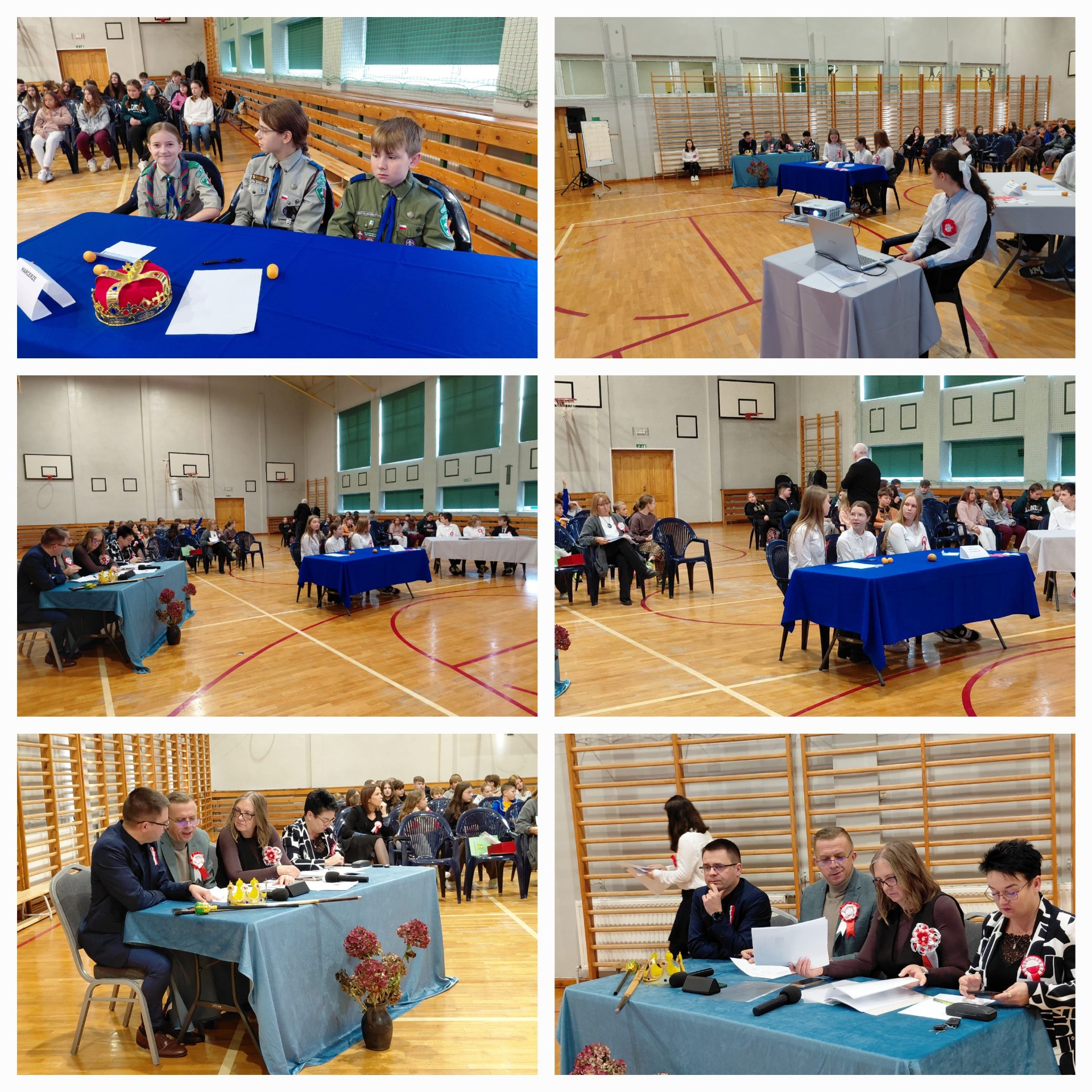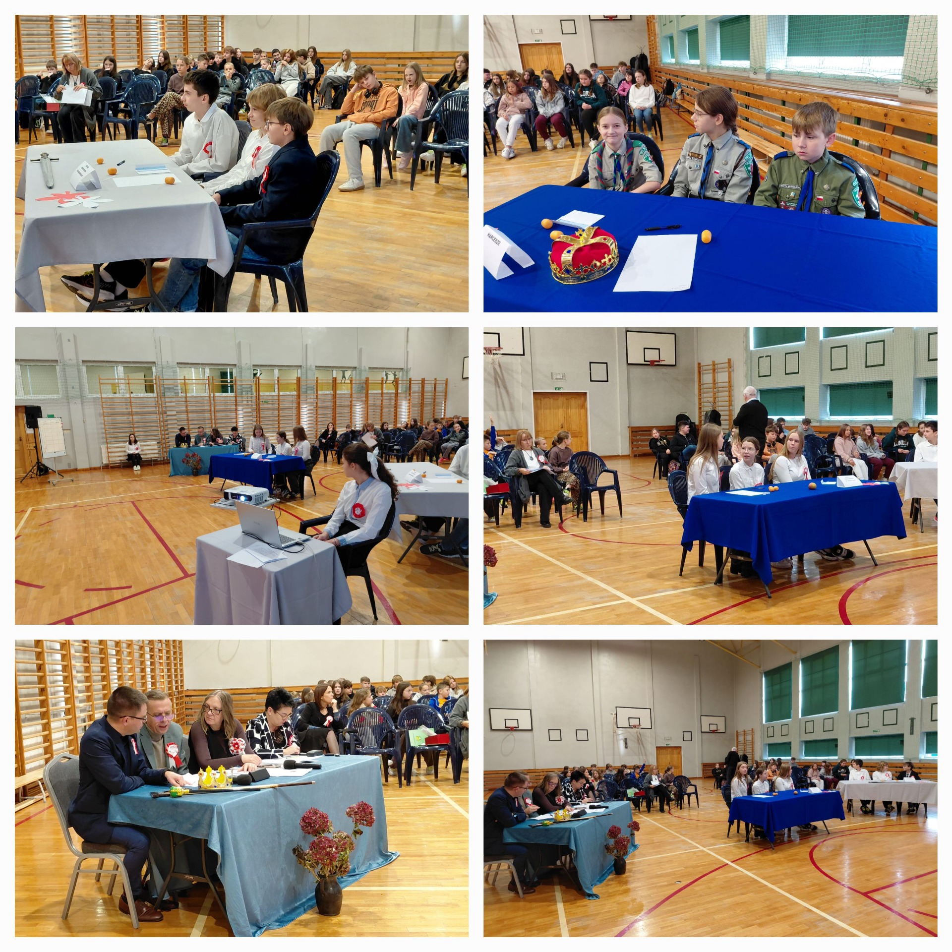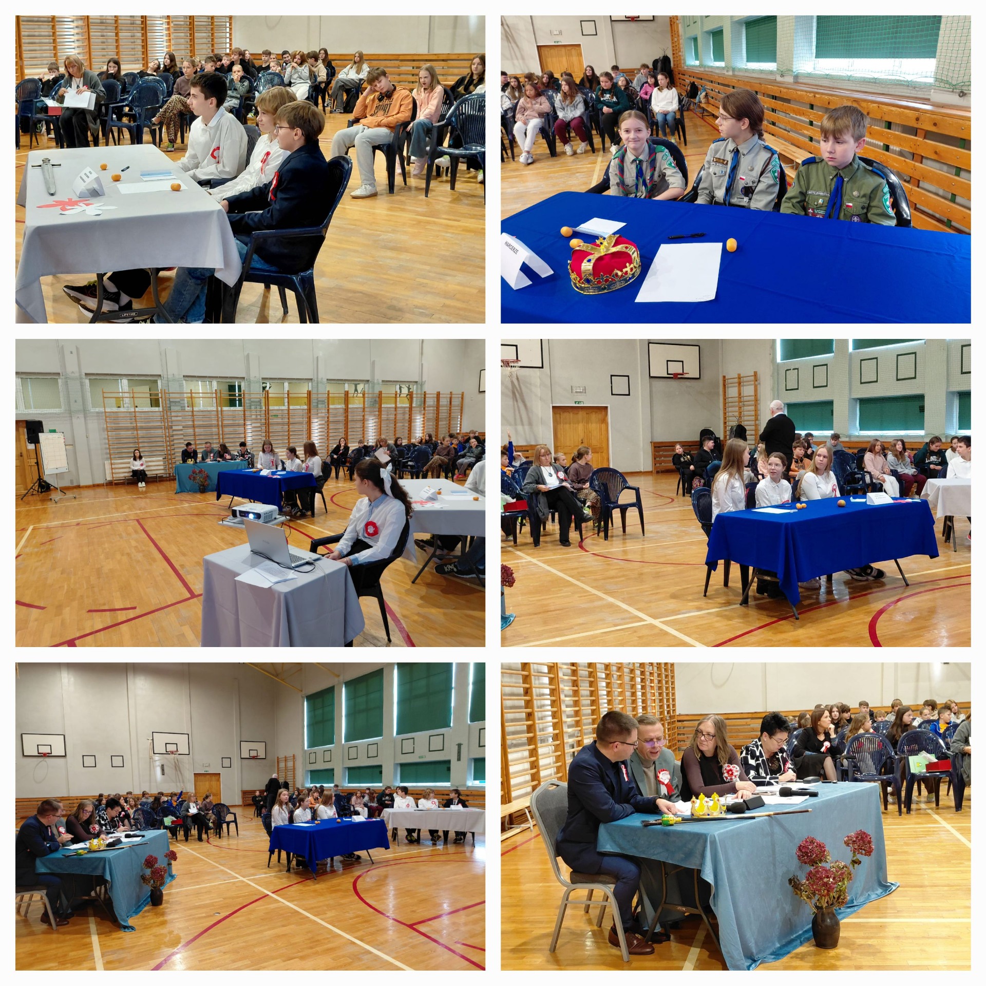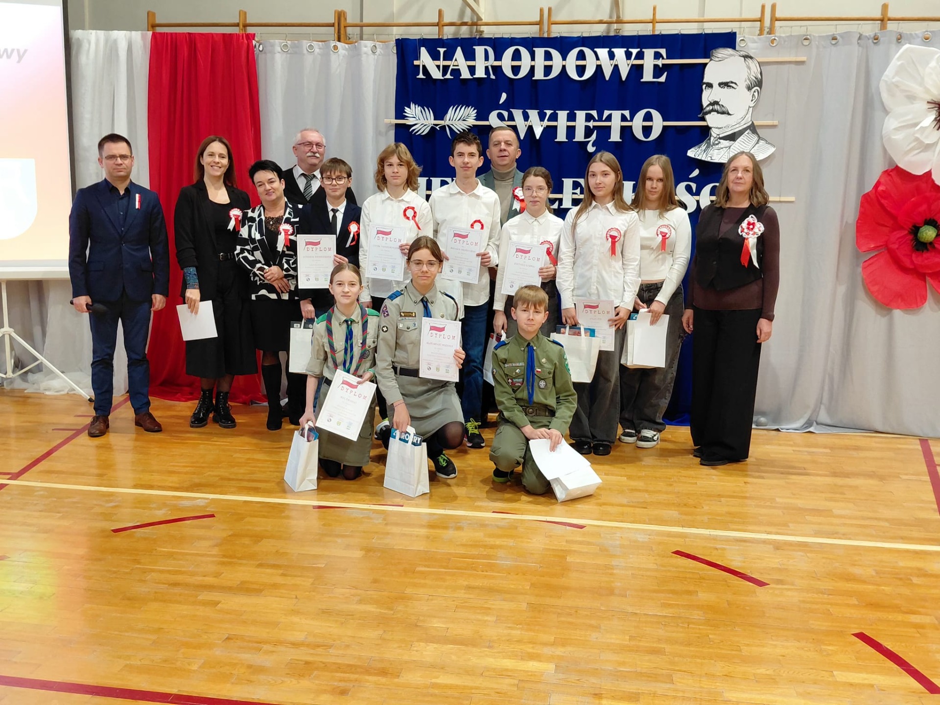 Obchody Narodowego Święta Niepodległości w naszej szkole rozpoczęły się w piątek 7 listopada uroczystym apelem i odśpiewaniem "Mazurka Dąbrowskiego" o godzinie 11.11 w ramach akcji MEN „Szkoła do hymnu”. Ich kontynuacją był dzisiejszy Marcinowicki Turniej Listopadowy. Wzięły w nim udział drużyny ze Szkoły Podstawowej w Strzelcach, Harcerze oraz uczniowie Szkoły Podstawowej w Marcinowicach. Uczestnicy odpowiadali na pytania związane z rocznicą koronacji pierwszego władcy Polski, historią Gminy Marcinowice oraz znajomością lektury „Dywizjon 303”. Odpowiedzi oceniało Jury w składzie: pan Dawid Sobczyk - dyrektor Centrum Kulturalno-Bibliotecznego w Marcinowicach, pan Robert Sawicki- sekretarz Gminy Marcinowice, pani Joanna Mazanka - dyrektor Szkoły Podstawowej w Strzelcach i pani Beata Golczewska dyrektor Szkoły Podstawowej w Marcinowicach.