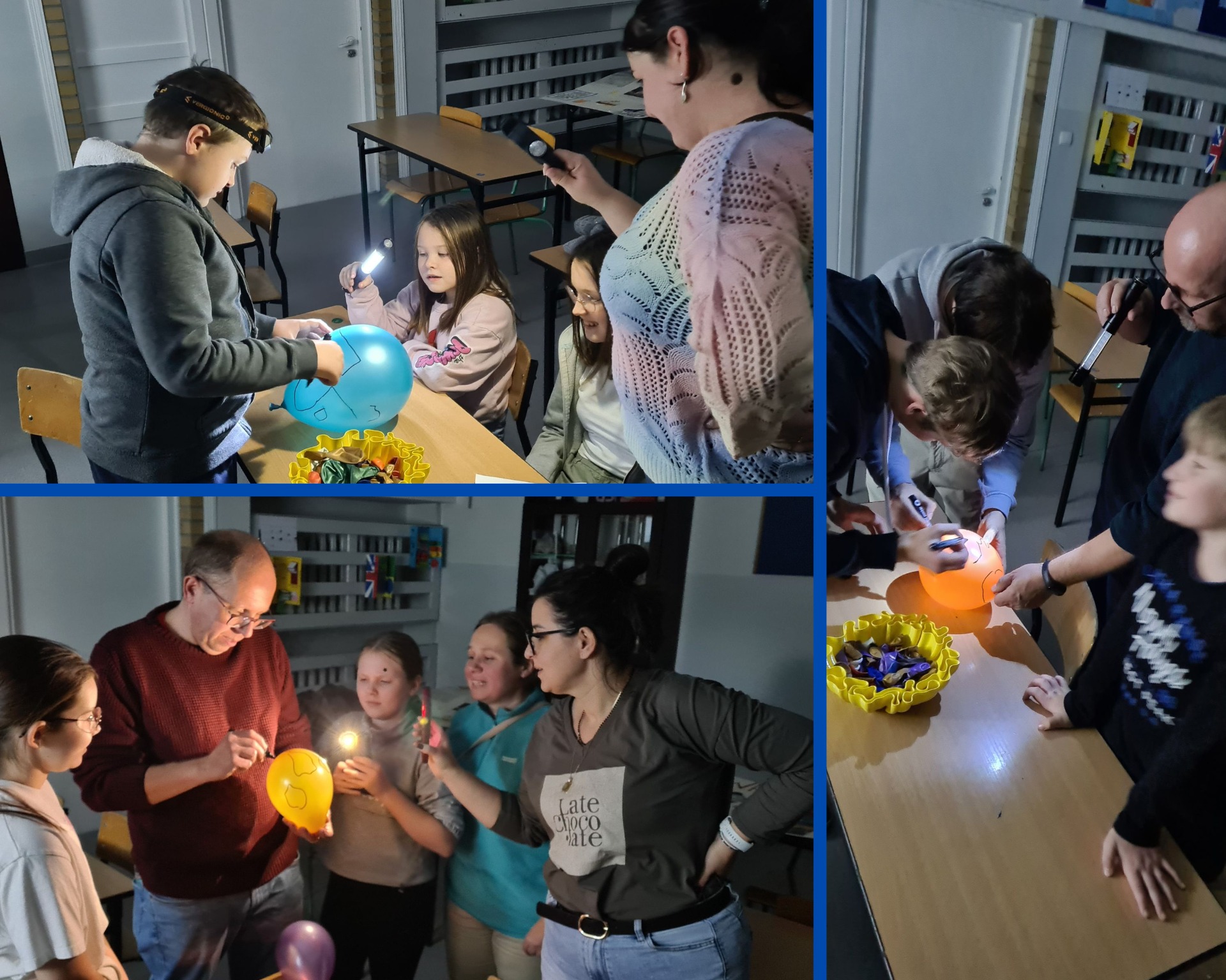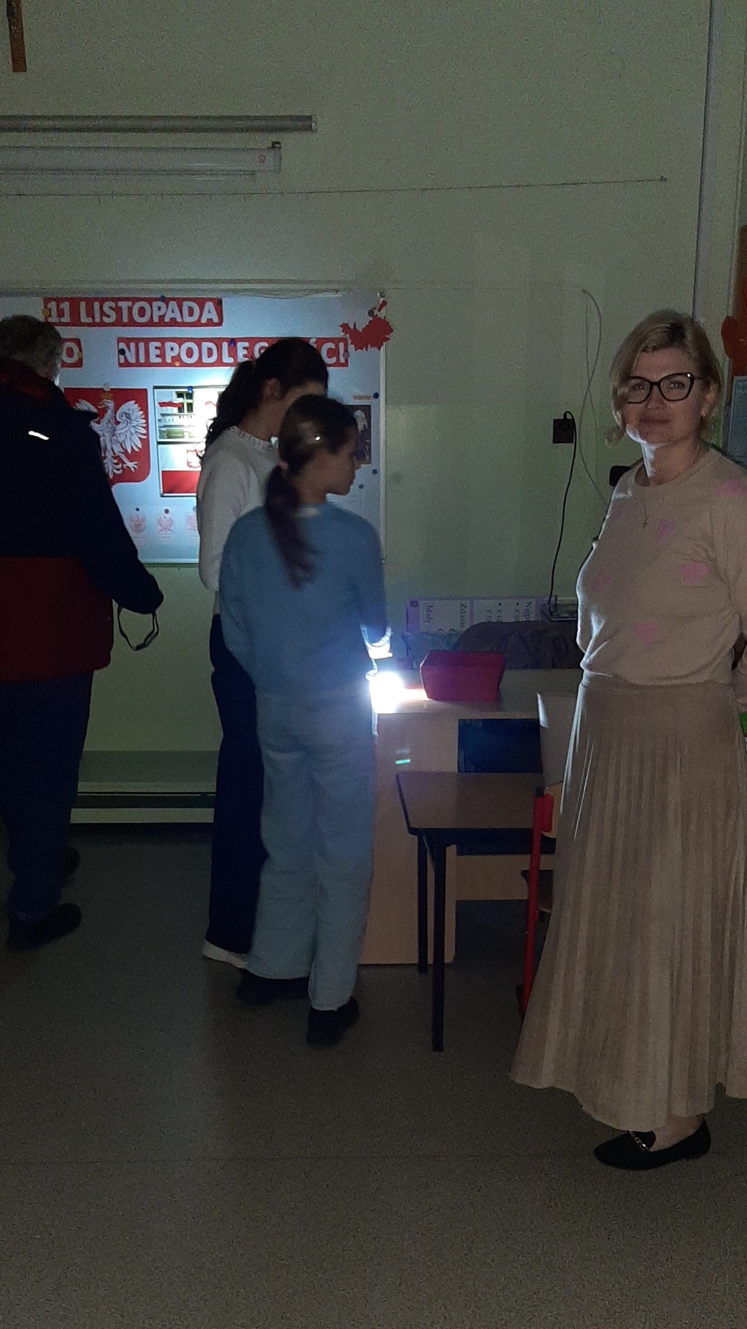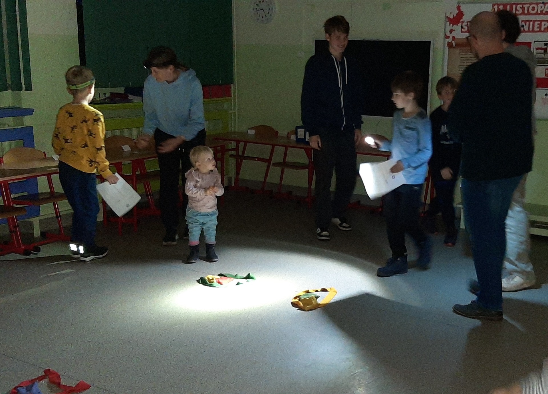 Jednym z najbardziej emocjonujących momentów było wyłączenie oświetlenia – uczestnicy, wyposażeni jedynie w latarki, przemierzali szkolne korytarze w ciemności. Zadania wymagały wiedzy, sprytu i współpracy, ale wszystkie drużyny poradziły sobie znakomicie. Po zakończonych zmaganiach na wszystkich czekał poczęstunek – ciepłe kiełbaski ufundowane przez firmę DAR-VIT z Marcinowic, za co składamy serdeczne podziękowania.