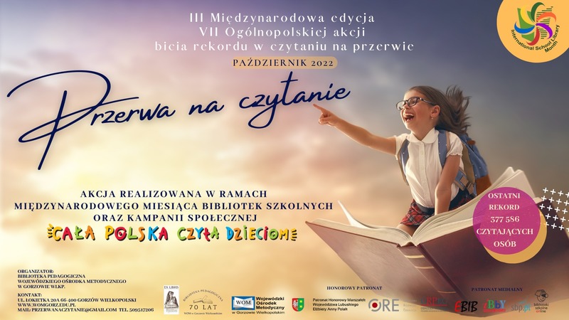 29 października 2022 Aktualności PRZERWA NA CZYTANIE W tym roku oddziały przedszkolne oraz klasy pierwsze i drugie uczestniczyły w III Międzynarodowej edycji VII Ogólnopolskiej Akcji bicia rekordu w czytaniu na przerwie „Przerwa na czytanie”. Wydarzenie... Czytaj więcej